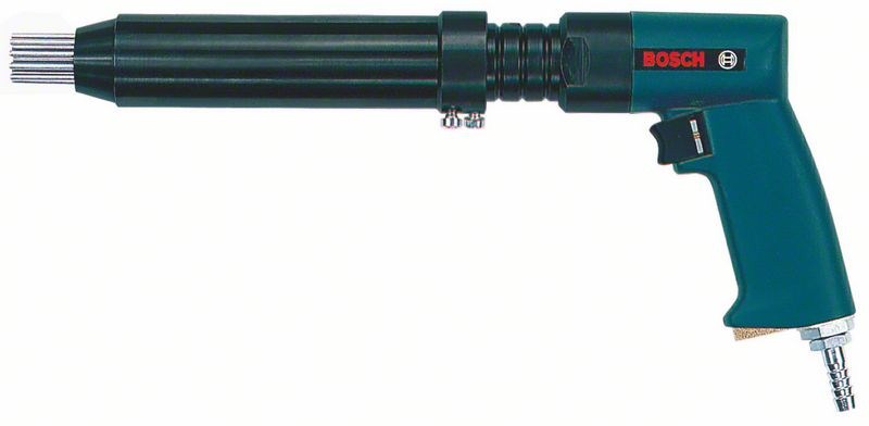 ПозиціонуванняПневматический игольчатый отбойник Bosch для удаления ржавчины со стали, для удаления остатков бетона со строительного оборудования, для удаления краски или очистки сварных швов.