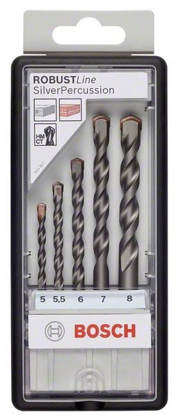 Набор из 5 свёрл по бетону Bosch Robust Line Silver Percussion 5; 5,5; 6; 7; 8 mm [2607010526]
