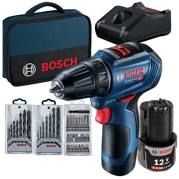 Акумуляторний дриль-шурупокрут Bosch GSR 12V-30, 2 ак. по 2Ah, безщітковий двигун + 3 нбори свердл та біт в сумці (06019G9001)