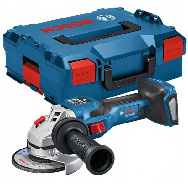 Bosch GWS 18V-15 SC Professional — це потужна безщіткова акумуляторна кутова шліфувальна машина, яку можна порівняти з 1.5 кВт мережевим аналогом. Використовуються 125 мм круги з посадкою 22.23 мм і шпинделем М14. Вони фіксуються швидкозатискною гайкою. Інструмент має регулювання швидкості в 6 положеннях (3400-9800 об/хв), світлодіодне інформаційне табло, можливість налаштування через застосунок із підключенням через Bluetooth. Поставляється в кейсі L-BOXX 136 з додатковою антивібраційною рукояткою. Без акумулятора та зарядного пристрою.