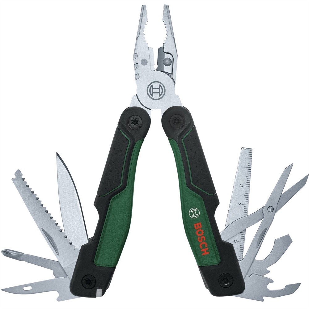 Комплектаціякілька викруток, плоскогубці, бокорізи, пилку, ніж, ножиці, напилок, шило з петлею для різьби, відкривачку для пляшок/банок, зубочистку, пінцет і метричну лінійку